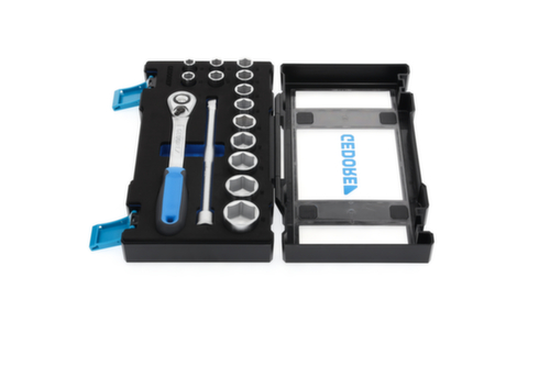 "longDescription": "Samengesteld op basis van dagelijkse werkplaatservaring, Met gesmede, geharde en getemperde, handbediende zeskantkopmoerdoppen van UD-profiel, Met bedieningsgereedschap van vanadiumstaal 31CrV3, Met robuuste hefboomratel, met drukknopontgrendeling, Met cardanverlenging, maakt zwenken tot 15° mogelijk<br>",