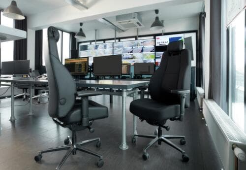 "description": "synchroonmech., m. armleuningen, m. hoofdsteun, zitting leer/stof zwart, zitting HxBxD 490-640x530x480-540mm, hoge rug, voetkruis aluminium, universele wielen",
