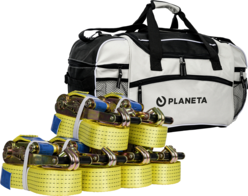 "longDescription": "<h2>Pakket sjorbanden</h2><strong>incl. sporttas</strong><br><ul><li>van met polyurethaan geïmpregneerd polyester</li><li>met profielhaken en ratel</li><li>met ingeweven tonnagestrepen</li><li>met belastbaarheidsetiket</li></ul><br><h3>Set bestaande uit:</h3><ul><li>6x 8 m, sjorbandbreedte 50 mm, trekkracht 5000 daN, 2-delig</li></ul><br><h3>Norm/ Richtlijn/ Verordening:</h3><ul><li>conform EN 12 195-2</li></ul>",