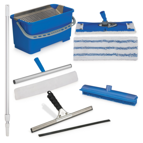 "longDescription": "<h2>OPSLAG</h2><p>Het raam- en vloerreinigingssysteem bevat alle belangrijke schoonmaakbenodigdheden voor professioneel ramen en vloeren reinigen. De aluminium telescoopstang kan tot 2 meter worden uitgeschoven, waardoor een ergonomische houding mogelijk is bij het schoonmaken van vloeren en ramen. De stang kan eenvoudig aan alle accessoires worden bevestigd met behulp van een schroefdraad. Het schoonmaaksysteem bevat een rubberen borstel en een mophouder voor het reinigen van vloeren. De rubberen borstel kan droog en nat worden gebruikt en kan worden gebruikt voor het vegen, reinigen en drogen van verschillende oppervlakken zoals tapijt, tegels, parket en zelfs buitenoppervlakken. De mophouder van het schoonmaaksysteem is gemaakt van stevig polypropyleen, het 360 graden draaibare scharnier maakt schoonmaken mogelijk, zelfs op moeilijk bereikbare plaatsen onder zitgedeeltes of in hoeken. De hygiënische microvezelmop kan worden gewassen en is daarom bijzonder duurzaam. Er is ook een extra vervangmop verkrijgbaar. Voor een efficiënte reiniging van ramen bevat het raam- en vloerreinigingssysteem een katoenen mop met katoenen overtrek. De zachte katoenen vezels zorgen ervoor dat gevoelige glazen oppervlakken niet worden bekrast. De katoenen hoes is ook wasbaar en er kan altijd een extra hoes worden besteld. De stevige stalen zuigmond droogt elk raam zonder strepen achter te laten. De zuigmond is verkrijgbaar in 3 breedtes en kan bijvoorbeeld ook in douchecabines worden gebruikt. Het rubber kan eenvoudig vervangen worden en er zijn ook vervangingsrubbers verkrijgbaar. Voor de stevige kunststof emmer met een inhoud van 22 liter kan een lekbak voor de zuigmond en trekker besteld worden om het ramen zemen nog gemakkelijker te maken. De volgende onderdelen zijn verkrijgbaar: - Stevige telescoopstang: Gemaakt van aluminium. Uitschuifbare lengte van 1 tot 2 meter. - Mophouder: Gemaakt van polypropyleen, incl. microvezel mop. 360° draaibaar. - Mop: Afmetingen: 12x35 cm. - Mophouder: Breedte 45 cm. Mop met katoenen overtrek. - Hoes voor zuigmond: katoen, breedte 45 cm. - Rubberen borstel: Kan droog of nat gebruikt worden. - Trekker: 3 breedtes beschikbaar: 25, 35 of 45 cm. Materiaal: staal met vervangbaar rubber. - Rubber voor zuigmond breedte 25 cm, 35 cm of 45 cm. - Emmer: Rechthoekig. Inhoud: 22 liter. Afmetingen: 49 x 24 x 24 cm. Materiaal: Plastic. - Bak: Lekbak voor zuigmond en trekker. We bieden ook poetsdoeken en andere schoonmaakproducten voor professioneel gebruik.</p><br>",