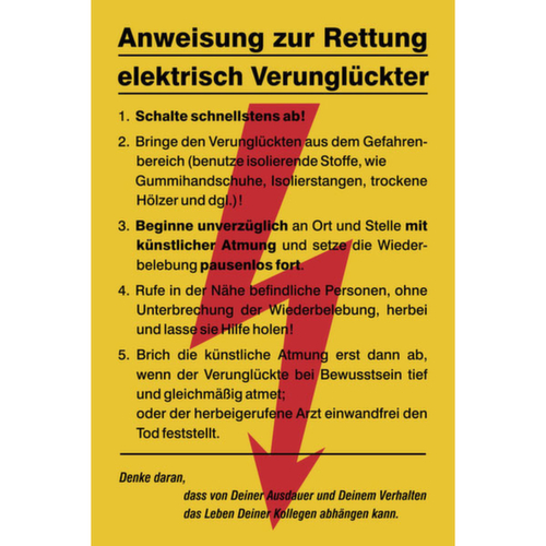 symbool/tekst: Instructies voor het redden van slachtoffers van elektrische ongevallen.