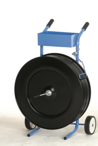 "longDescription": "<h2>Verrijdbare afroller</h2><strong>voor omsnoeringsband van polypropyleen</strong><br><ul><li>voor grote rollen geschikt</li><li><strong>plaats genoeg</strong> - met opbergbak voor hulzen en apparaten</li><li><strong>eenvoudig te stoppen</strong> - met beugelrem</li><li>Robuuste plaatstalen constructie</li><li>Lange levensduur dankzij gelakt oppervlak</li></ul>",