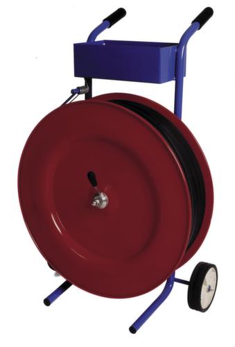 "longDescription": "<h2>Verrijdbare afroller</h2><strong>voor omsnoeringsband van polypropyleen</strong><br><ul><li>voor grote rollen geschikt</li><li><strong>plaats genoeg</strong> - met opbergbak voor hulzen en apparaten</li><li><strong>eenvoudig te stoppen</strong> - met beugelrem</li><li>Robuuste plaatstalen constructie</li><li>Lange levensduur dankzij gelakt oppervlak</li></ul>",