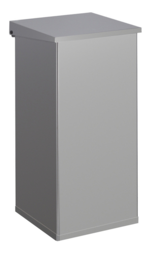 de belangrijkste maten van de afvalbak Carro Lift in één oogopslag:Voor opstelling op de vloer. bak vuurvast. Met klapdeksel - de opening gebeurt handmatig. sluit gedempt voor een rustige werkomgeving. Eenvoudig te legen via deksel. romp van aluminium met slag- en krasvaste poedercoating in grijs. deksel van aluminium in grijs.