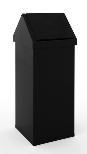 de belangrijkste maten van de afvalbak Carro Swing in één oogopslag:Voor opstelling op de vloer. Met zwenkdeksel - de opening gebeurt handmatig. Eenvoudig te legen via hoofdgedeelte. romp van aluminium in zwart. deksel van aluminium in zwart.