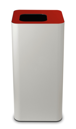 de belangrijkste maten van de afvalbak PURE ESSENTIAL in één oogopslag:klemring voor de zakbevestiging. romp van staal met slag- en krasvaste poedercoating in wit.