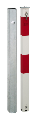 "metaDescription": "Afzetpaal, hoogte 900 mm, om in te betonneren - hoekig, HxBxD 900x70x70mm, aluminium, rood/wit, neerlaatbaar, cil.-slot, v. inbetonneren",
