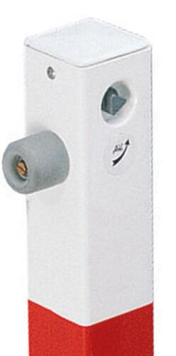 "description": "m. platte kop, HxØ 1000x60mm, staal, rood/wit, in-/uitklap-/afsluitbaar, cil.-slot, m. grondplug",