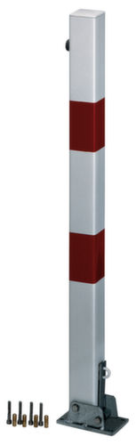 "longDescription": "<h2>Afsluitpaal</h2><strong>met platte kop</strong><br><ul><li>Signaalwerking - met 3 reflecterende strepen in rood</li><li>Absoluut weerbestendig en duurzaam - gemaakt van thermisch verzinkte stalen buizen</li><li>Extreem slijtvast oppervlak door kunststof coating</li></ul><br><h3>Je hebt de keuze:</h3><ul><li>Permanente barrière of doorgang op korte termijn - voor permanent inbetonneren of vastzetten, voor verwijderen of kantelen</li><li>Rond of vierkant - gemaakt van ronde of vierkante buis</li></ul>",