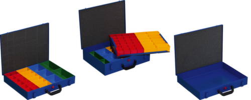 "longDescription": "<h2>Assortimentskoffer</h2><strong>inhoud beschermd tegen wegglijden door beklede deksel</strong><br><ul><li><strong>voor professioneel gebruik</strong> - koffer van plaatstaal met krasvaste poedercoating</li></ul><h3>De keuze is aan jou:</h3><ul><li><strong>voor individuele indeling of direct gebruiksklaar</strong> - koffer naar keuze leeg of met uitneembare inzetbakken van polystyreen</li></ul>",