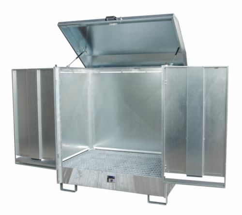 "longDescription": "<h2>Depot gevaarlijke stoffen van staal</h2><ul><li>Volledig gemaakt van gegalvaniseerd staal</li><li>Vloerplaat 3 mm dik</li><li>Rooster met draagvermogen 1000 kg/m²</li><li>Dak kan worden opgeklapt met gasdrukveren</li><li>Kan veilig worden gesloten</li><li>Vultrechter of vulpompen kunnen samen met het vat binnenin worden geplaatst</li></ul>",