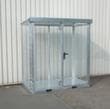 "longDescription": "<h2>Gasflessen depot</h2><ul><li>Stabiel en corrosiebestendig - frame van gegalvaniseerd staal</li><li>Kan van alle kanten bekeken worden - achter- en zijwanden van gaas</li><li>Bescherming tegen regen door gesloten dak</li><li>Permanent geventileerd door vleugeldeur met gaas</li><li>Bescherming tegen toegang door onbevoegden - afsluitbaar</li></ul><br><strong>Levering!</strong><br><ul><li>Wordt kant-en-klaar gemonteerd geleverd</li><li>Lossen met vorkheftruck vereist</li></ul><br><strong>Goed om te weten!</strong><br>De opslag van gasflessen moet voldoen aan strenge eisen, omdat de flessen behoren tot opslaggoederen met een hoog risicopotentieel. Gasflessen mogen niet worden opgeslagen in kelders, garages of werkruimtes.<br>",