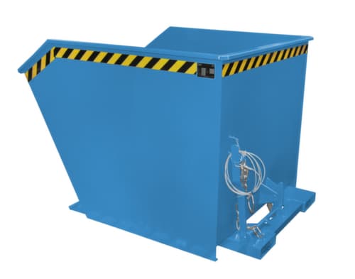 De belangrijkste maten van de Bauer kiepbak in één oogopslagHandig kiepen vanaf de bestuurdersstoel dankzij trekkoordontgrendeling. Door de speciale plaats van het draaipunt is de kantelhoek gunstig, waardoor snel en volledig legen mogelijk is. Keert terug naar basispositie door neerzetten op de vloer en de kantelbeveiliging klikt weer automatisch vast. Met een beveiligingsketting aan de vorksloffen van de heftruck kan de kiepbak extra worden beveiligd tegen wegglijden . Zeer stabiel door omgeslagen randversteviging rondom en stevig basisframe. Robuuste constructie van staal gelakt in RAL 5012 lichtblauw. Om de kiepbak gemakkelijk te transporteren en te legen, tilt u hem eenvoudig met een heftruck op via de vorksloffen en rijdt u hem naar de gewenste plek en de vereiste hoogte.