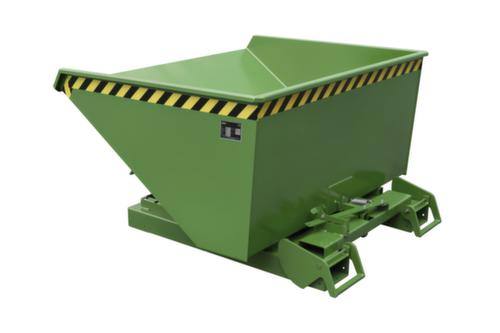 De belangrijkste maten van de Bauer kiepbak 4A 600 in één oogopslagAls de kiepbak op de containerrand wordt geplaatst, geeft de ontgrendelvoet de ontgrendeling vrij en wordt de bak automatisch geleegd. Dit versnelt het arbeidsproces en verhoogt de veiligheid in uw bedrijf. Het kantelmechanisme heeft 3 automatische ontgrendelingspunten, zodat het legen trapsgewijs plaatsvindt. Omdat de sleden gebruik maken van een gunstig lastzwaartepunt, verloopt het kantelen rustig zonder te zware belasting van de heftruck. Na het legen zwenkt de kiepbak automatisch terug naar de uitgangspositie en de kantelbeveiliging klikt weer automatisch vast. Zeer stabiel door omgeslagen randversteviging rondom en stevig basisframe. Robuuste constructie van staal gelakt in RAL6011 resedagroen. Om de kiepbak gemakkelijk te transporteren en te legen, tilt u hem eenvoudig met een heftruck op via de vorksloffen en rijdt u hem naar de gewenste plek en de vereiste hoogte.