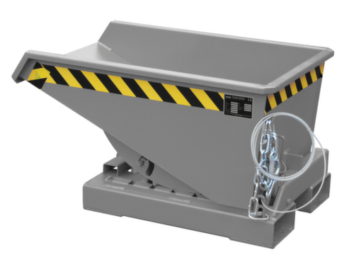 De belangrijkste maten van de Bauer kiepbak in één oogopslagHandig kiepen vanaf de bestuurdersstoel dankzij trekkoordontgrendeling. Kantelen verloopt rustig omdat de sleden gebruik maken van een gunstig lastzwaartepunt. Na het legen zwenkt de kiepbak automatisch terug naar de uitgangspositie en de kantelbeveiliging klikt weer automatisch vast. Met een beveiligingsketting aan de vorksloffen van de heftruck kan de kiepbak extra worden beveiligd tegen wegglijden . Zeer stabiel door omgeslagen randversteviging rondom en stevig basisframe. Robuuste constructie van staal gelakt in RAL7005 muisgrijs. Om de kiepbak gemakkelijk te transporteren en te legen, tilt u hem eenvoudig met een heftruck op via de vorksloffen en rijdt u hem naar de gewenste plek en de vereiste hoogte.
