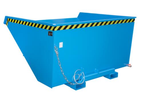 Handig kiepen vanaf de bestuurdersstoel dankzij trekkoordontgrendeling. Door de speciale plaats van het draaipunt is snel en volledig legen mogelijk. De bak kantelt rustig zonder klappen omdat het heftruckvriendelijke afrolmechanismegebruik maakt van een gunstig lastzwaartepunt. De kantelbeveiliging zorgt ervoor dat de bak tijdens het transport niet onbedoeld kantelt. De kiepbak is ook geschikt voor de opname van vloeistoffen - olie en waterdicht gelast. Opgevangen vloeistoffen, zoals olie of water, worden door een zeef van de vaste stoffen gescheiden en kunnen met een kraan worden afgetapt zonder de container te kantelen. Hierdoor wordt veel tijd bespaard. wanden gesloten. Zeer stabiel door omgeslagen randversteviging rondom en stevig basisframe. Om de kiepbak gemakkelijk te transporteren en te legen, tilt u hem eenvoudig met een heftruck op via de vorksloffen en rijdt u hem naar de gewenste plek en de vereiste hoogte.