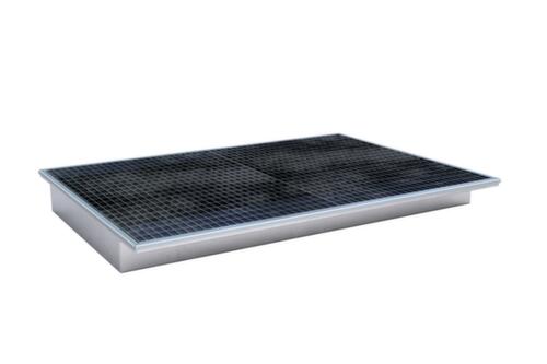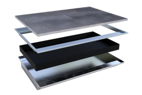 Met de inhangbare opvangbak kunt u palletstellingen of andere stellingsystemen snel en volgens de voorschriften ombouwen voor de opslag van gevaarlijke stoffen. In tegenstelling tot andere opvangbakken wordt deze ophangbak niet onder de stelling geplaatst, maar direct als een afzonderlijk niveau op de lengteliggers. Door het overstekend deel aan de lange zijden ontstaat een stevig oplegvlak. De opvangbak is dus ingebed tussen de lengteliggers en wegglijden is niet mogelijk.