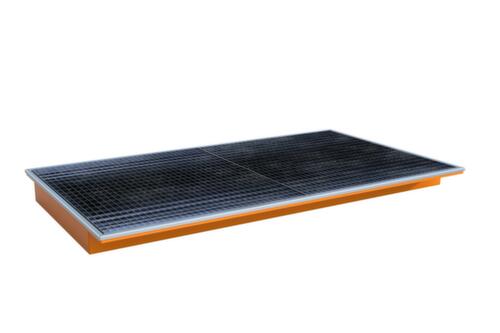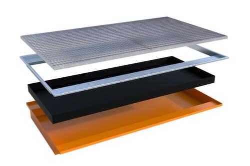 Met de inhangbare opvangbak kunt u palletstellingen of andere stellingsystemen snel en volgens de voorschriften ombouwen voor de opslag van gevaarlijke stoffen. In tegenstelling tot andere opvangbakken wordt deze ophangbak niet onder de stelling geplaatst, maar direct als een afzonderlijk niveau op de lengteliggers. Door het overstekend deel aan de lange zijden ontstaat een stevig oplegvlak. De opvangbak is dus ingebed tussen de lengteliggers en wegglijden is niet mogelijk.