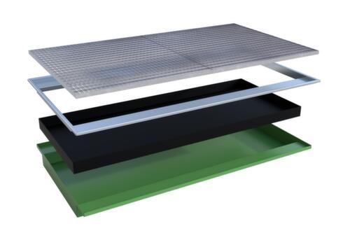 Met de inhangbare opvangbak kunt u palletstellingen of andere stellingsystemen snel en volgens de voorschriften ombouwen voor de opslag van gevaarlijke stoffen. In tegenstelling tot andere opvangbakken wordt deze ophangbak niet onder de stelling geplaatst, maar direct als een afzonderlijk niveau op de lengteliggers. Door het overstekend deel aan de lange zijden ontstaat een stevig oplegvlak. De opvangbak is dus ingebed tussen de lengteliggers en wegglijden is niet mogelijk.
