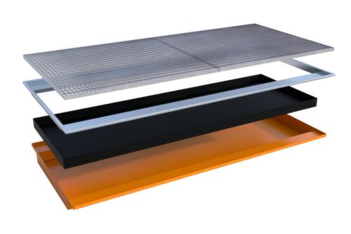 Met de inhangbare opvangbak kunt u palletstellingen of andere stellingsystemen snel en volgens de voorschriften ombouwen voor de opslag van gevaarlijke stoffen. In tegenstelling tot andere opvangbakken wordt deze ophangbak niet onder de stelling geplaatst, maar direct als een afzonderlijk niveau op de lengteliggers. Door het overstekend deel aan de lange zijden ontstaat een stevig oplegvlak. De opvangbak is dus ingebed tussen de lengteliggers en wegglijden is niet mogelijk.