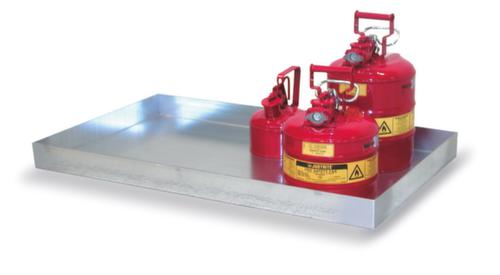 "longDescription": "<h2>Lekbak</h2><strong>Veilige opslag van kleine containers</strong><br><ul><li>Geschikt voor waterverontreinigende en ontvlambare stoffen</li><li>Geen morsen door hoge omringende zijranden</li></ul><br><h3>Je hebt de keuze:</h3><ul><li>Corrosiebestendig of roestvrij - gemaakt van gegalvaniseerd staal of roestvrij staal</li></ul><br><strong>Bepalingen!</strong><br>Model van de opvangbakken officieel toegelaten. Te gebruiken voor aquatoxische en ontvlambare stoffen voor opslag onder dak.<br>",