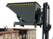 Als de kiepbak op de containerrand wordt geplaatst, geeft de ontgrendelvoet de ontgrendeling vrij en wordt de bak automatisch geleegd. Dit versnelt het arbeidsproces en verhoogt de veiligheid in uw bedrijf. De bak kan ook altijd handmatig worden geleegd via trekkoordontgrendeling. Kantelen verloopt rustig omdat de sleden gebruik maken van een gunstig lastzwaartepunt. Na het legen zwenkt de kiepbak automatisch terug naar de uitgangspositie en de kantelbeveiliging klikt weer automatisch vast. Robuuste constructie van staal gelakt in RAL7005 muisgrijs. Om de kiepbak gemakkelijk te transporteren en te legen, tilt u hem eenvoudig met een heftruck op via de vorksloffen en rijdt u hem naar de gewenste plek en de vereiste hoogte.