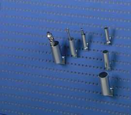 "value": "2 draagzuilen, magneetwand, geperforeerde plaat, 2 legborden, 20 zichtbakken, licht"