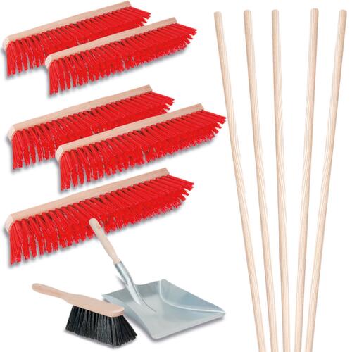 "metaDescription": "Bezemset plus handveger en blik, werkbreedte 600 mm - 5xstraatbezem, 5xsteel, 1xstoffer en blik, Werk b 600mm, hout-steel, v. alle soorten vuil op een ruwe ondergrond",