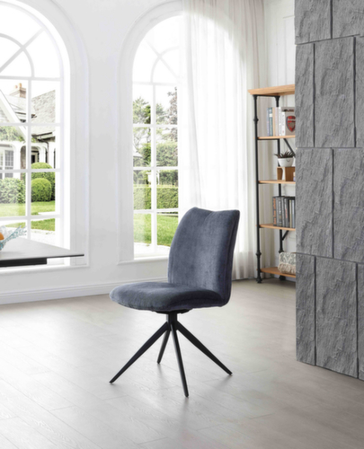 uitrusting:stervoetonderstel van ronde buis-staal met slag- en krasvaste poedercoating in zwart. zitting van hard schuim met bekleding. zittingbekleding van stof (100% polyester) in oxfordblauw. 360° draaibaar.