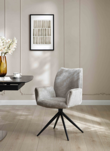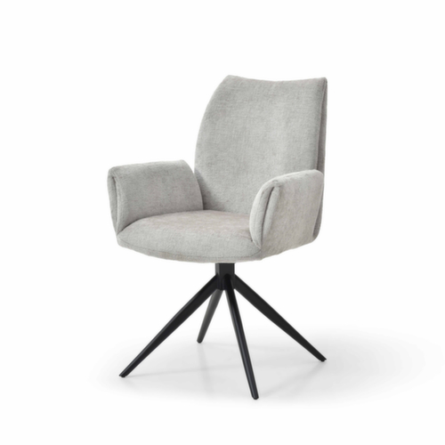 uitrusting:stervoetonderstel van ronde buis-staal met slag- en krasvaste poedercoating in zwart. Uitvoering met vaste armleuningen. zitting van hard schuim met bekleding. zittingbekleding van stof (100% polyester) in portland. 360° draaibaar.