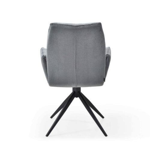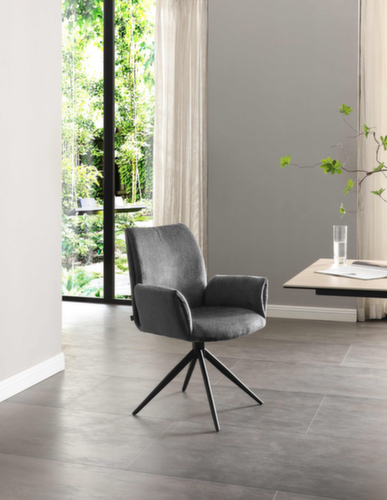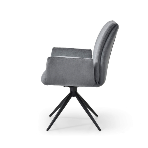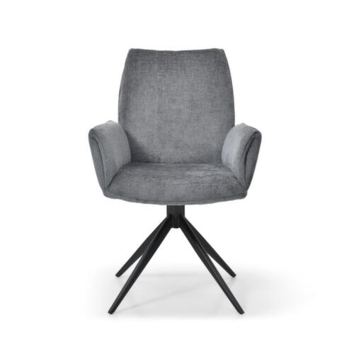 uitrusting:stervoetonderstel van ronde buis-staal met slag- en krasvaste poedercoating in zwart. Uitvoering met vaste armleuningen. zitting van hard schuim met bekleding. zittingbekleding van stof (100% polyester) in slate. 360° draaibaar.