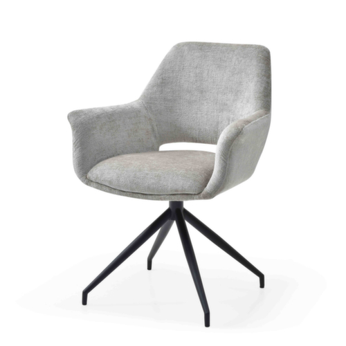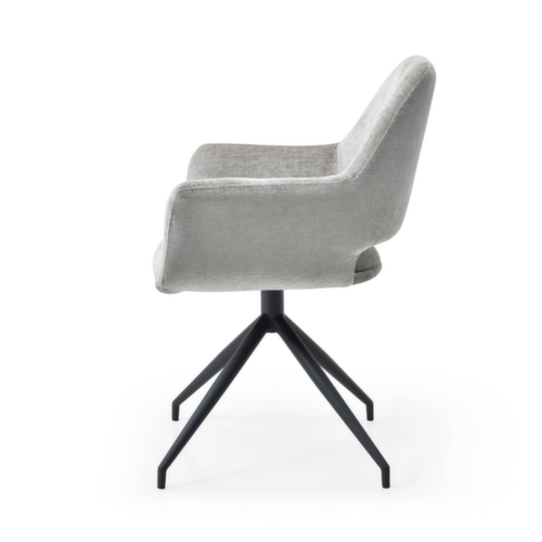uitrusting:stervoetonderstel van ronde buis-staal met slag- en krasvaste poedercoating in zwart. Uitvoering met vaste armleuningen. zitting van hard schuim met bekleding. zittingbekleding van stof (100% polyester) in portland. 360° draaibaar.