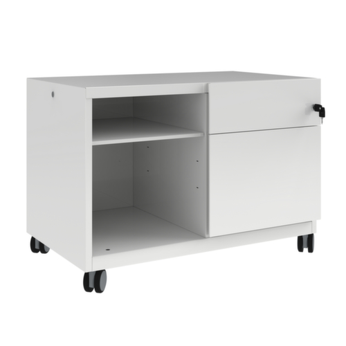 rechts 1 lade en 1 hangmappenframe, links 2 open vakken