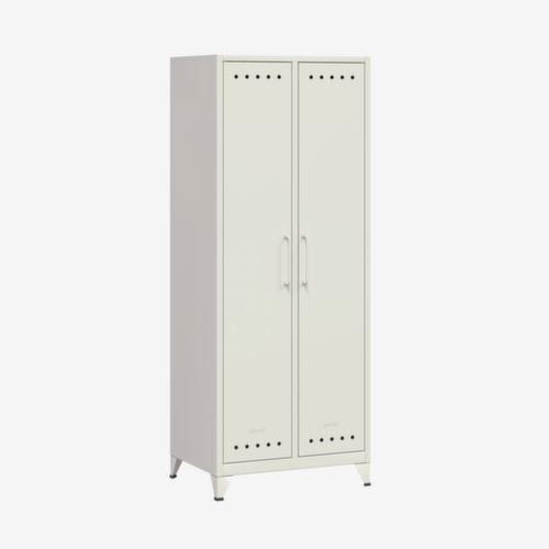 De belangrijkste afmetingen van de Bisley wasgoedkast Fern Maxi in één oogopslag:per vak hoedenplank en kledingstang. met scheidingswand. Stofdicht afsluitbaar d.m.v. dubbele openslaande deur. deur sluit goed op de romp aan. Met grepen. Via de design-ventilatiegaten in de deur wordt lucht voortdurend gecirculeerd. staat stevig door 4 voeten. constructie van staal, gelast. romp gelakt in verkeerswit, front gelakt in verkeerswit.