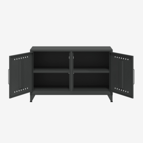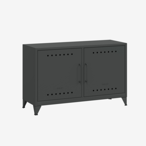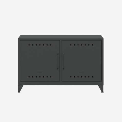 de belangrijkste maten van de Bisley universele kast Fern Cabby in één oogopslag:De romp van de kast is gemaakt van staal en gelast. uitgerust met 1 legbord, kabeldoorvoer in achterwand en kabelhouder met klittenband. Via de design-ventilatiegaten in de deur wordt lucht voortdurend gecirculeerd. Via de dubbele openslaande deur is de kast zeer goed toegankelijk. deur sluit goed op de romp aan. Te openen is de bijzetkast met grepen. staat stevig door 4 voeten.