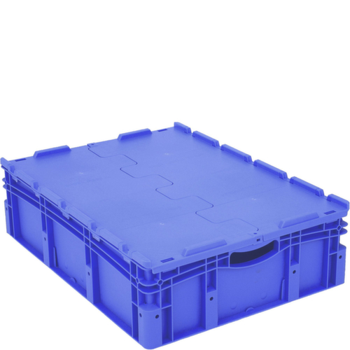 maten afgestemd op europallet. van breukvast polypropyleen in blauw. Wanden gesloten, bodem gesloten. scharnierdeksel. eenvoudig transport door open greep. met etikethouder aan alle zijden. Meervoudig stapelbaar. geschikt voor levensmiddelen. Geschikt voor verschillende stoffen, gelieve aan te vragen.