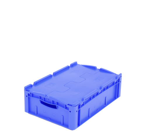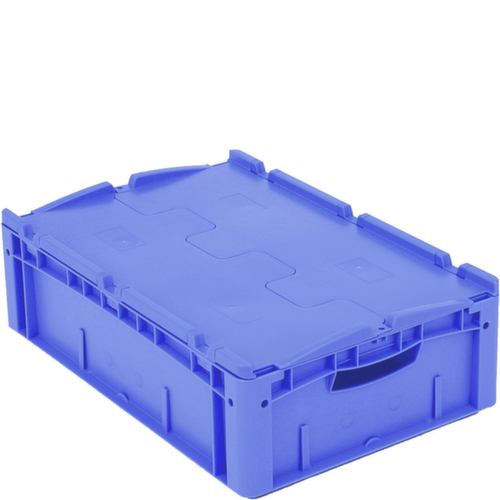 maten afgestemd op europallet. van breukvast polypropyleen in blauw. Wanden gesloten, bodem gesloten. De opgeslagen goederen zijn beschermd tegen stof en vuil door de tweedelige scharnierdeksel. eenvoudig transport door open greep. Meervoudig stapelbaar. geschikt voor levensmiddelen. recyclebaar.