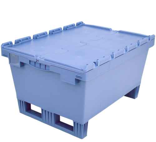 In euromaat. van breukvast polypropyleen in duifblauw. De opgeslagen goederen zijn door de gesloten wanden beschermd tegen stof en de bak is gemakkelijk te reinigen. legbord gesloten met versteviging door verstevigingsribben. krokodildeksel. Dankzij de sleden gemakkelijk te verplaatsen en in te rijden met een heftruck. Plaatsbesparend stapelbaar. Geschikt voor rollenbanen.