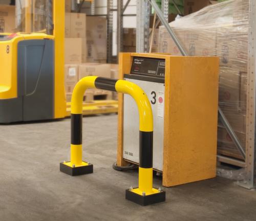 "longDescription": "<h2>Flexibele stootlijst</h2><ul><li>Gemaakt van kwaliteitsstaal, Ø 76 x 3 mm met plastic coating in gele en zwarte signaalstrepen.</li><li>Voor gebruik buitenshuis bovendien thermisch gegalvaniseerd</li><li>Elastische, schokabsorberende PU veerelementen</li><li>Beugel inclinatie tot 10</li><li>Bodemplaat 160 x 140 mm</li><li>Voor deuvels</li></ul>",