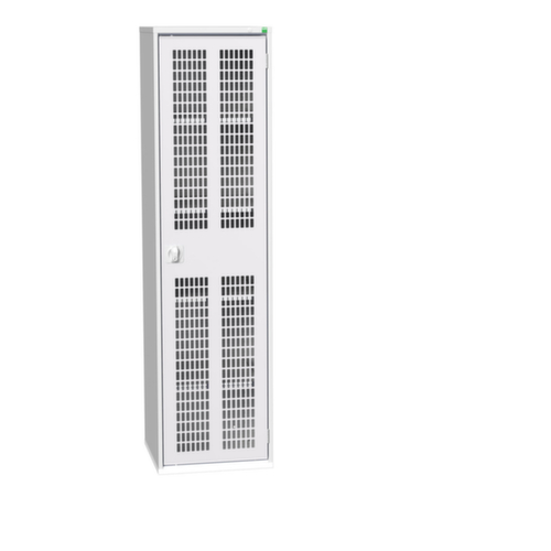 De romp van de kast is gemaakt van staal en stevig gelast. Dit maakt de constructie zeer robuust en sterk en dus duurzamer. Omdat de hoeken en randen van de romp gelast zijn, is de kast goed afgedicht en dus beter beschermd tegen stof, vocht en vuil dan bij een schroefconstructie. Bovendien is regelmatig onderhoud en nastellen niet nodig. openslaande deur met ventilatiesleuven. afsluitbaar met draaigrendelslot. De sokkel onder de kast zorgt ervoor dat het gewicht van de kast gelijkmatig over de vloer wordt verdeeld. Hierdoor staat de kast stabieler en kan hij zwaardere lasten dragen dan een kast met voeten. En omdat er geen vuil, stof en vocht onder kan komen, hoeft er onder de kast niet te worden schoongemaakt.