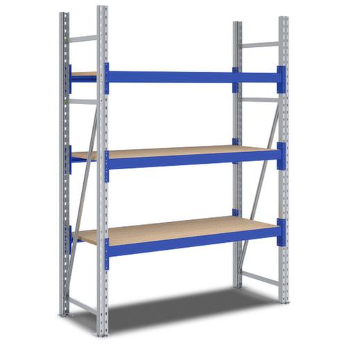 de belangrijkste maten van de breedvakstelling in één oogopslag:3 niveaus met houten vloer. vakhoogtes zijn afhankelijk van het doel en uw behoeften verstelbaar in stappen van 50 mm. constructie van staal, staanders met corrosiebeschermende zinklaag, traversen met slijtvaste kunststof coating in RAL5010 gentiaanblauw. staander met voetplaat (vastschroefbaar).