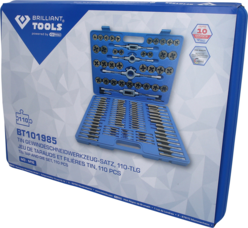 "longDescription": "<ul><li class=\"liste\">110-delige set</li><li class=\"liste\">metrisch</li><li class=\"liste\">M2 - M18</li><li class=\"liste\">voor de productie van binnen- en buitendraad DIN 352 - DIN 223</li><li class=\"liste\">Snijgereedschap met titaniumcoating</li><li class=\"liste\">inclusief voorsnijder en nasnijder</li></ul><br />De BRILLIANT TOOLS BT101985 set draadsnijgereedschap is een 110-delige set draadsnijgereedschap. De titanium gecoate snijgereedschappen kunnen gebruikt worden om inwendige en uitwendige schroefdraad te produceren van M2 - M18. Per maat worden 2 tappen, voor- en nastappen, meegeleverd.<br /><br /><strong>Leveringsomvang:</strong><br /><br />1 T-greep tapsleutel: M2 - M3<br />2 kraansleutels: M3 - M12, M6 - M20<br />2 taphouders: M2 - M9, M10 - M18<br />35 Handtapsets 2 st: M2 x 0,4 mm - M3 x 0,5 mm - M4 x 0,7 mm - M5 x 0,8 mm - M6 x 0,75 mm - M6 x 1,0 mm - M7 x 0,75 mm - M7 x 1,0 mm - M8 x 0,75 mm - M8 x 1,0 mm,0 mm - M8 x 1,25 mm - M9 x 0,75 mm - M9 x 1,0 mm - M9 x 1,25 mm - M10 x 0,75 mm - M10 x 1,0 mm - M10 x 1,25 mm - M10 x 1,5 mm - M11 x 0,75 mm - M11 x 1.0 mm - M11 x 1.25 mm - M11 x 1.5 mm - M12 x 0.75 mm - M12 x 1.0 mm - M12 x 1.25 mm - M12 x 1.5 mm - M12 x 1.75 mm - M14 x 1,0 mm - M14 x 1,25 mm - M14 x 1,5 mm - M14 x 2,0 mm - M16 x 2,0 mm - M16 x 1,5 mm - M16 x 1,0 mm - M18 x 1,5 mm<br />35 Snijmatrijzen: M2 x 0,4 mm - M3 x 0,5 mm - M4 x 0,7 mm - M5 x 0,8 mm - M6 x 0,75 mm - M6 x 1,0 mm - M7 x 0,75 mm - M7 x 1,0 mm - M8 x 0,75 mm - M8 x 1,0 mm - M8 x 1,0 mm,0 mm - M8 x 1,25 mm - M9 x 0,75 mm - M9 x 1,0 mm - M9 x 1,25 mm - M10 x 0,75 mm - M10 x 1,0 mm - M10 x 1,25 mm - M10 x 1,5 mm - M11 x 0,75 mm - M11 x 1.0 mm - M11 x 1.25 mm - M11 x 1.5 mm - M12 x 0.75 mm - M12 x 1.0 mm - M12 x 1.25 mm - M12 x 1.5 mm - M12 x 1.75 mm - M14 x 1,0 mm - M14 x 1,25 mm - M14 x 1,5 mm - M14 x 2,0 mm - M16 x 2,0 mm - M16 x 1,5 mm - M16 x 1,0 mm - M18 x 1,5 mm<br /><br />ONZE KWALITEIT: BRILJANT<br />ONZE PRIJZEN: SMART<br /><br />Elk gereedschap bevat meer dan een kwart eeuw ervaring van onze experts. Deze compromisloze kwaliteit, professioneel gereedschap van de hoogste kwaliteit voor het zware dagelijkse werk, is een van onze succesrecepten. We hebben geen grote verkoopstructuur en extravagante marketingactiviteiten en kunnen je daarom de producten aanbieden tegen een sensationeel gunstige prijs/prestatieverhouding. Bespaar geld zonder uw kwaliteitsnormen te verlagen!<br /><br />Een kwaliteitsgereedschap van KS TOOLS.<br /><br>",