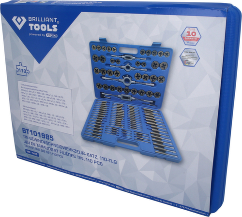 "longDescription": "<ul><li class=\"liste\">110-delige set</li><li class=\"liste\">metrisch</li><li class=\"liste\">M2 - M18</li><li class=\"liste\">voor de productie van binnen- en buitendraad DIN 352 - DIN 223</li><li class=\"liste\">Snijgereedschap met titaniumcoating</li><li class=\"liste\">inclusief voorsnijder en nasnijder</li></ul><br />De BRILLIANT TOOLS BT101985 set draadsnijgereedschap is een 110-delige set draadsnijgereedschap. De titanium gecoate snijgereedschappen kunnen gebruikt worden om inwendige en uitwendige schroefdraad te produceren van M2 - M18. Per maat worden 2 tappen, voor- en nastappen, meegeleverd.<br /><br /><strong>Leveringsomvang:</strong><br /><br />1 T-greep tapsleutel: M2 - M3<br />2 kraansleutels: M3 - M12, M6 - M20<br />2 taphouders: M2 - M9, M10 - M18<br />35 Handtapsets 2 st: M2 x 0,4 mm - M3 x 0,5 mm - M4 x 0,7 mm - M5 x 0,8 mm - M6 x 0,75 mm - M6 x 1,0 mm - M7 x 0,75 mm - M7 x 1,0 mm - M8 x 0,75 mm - M8 x 1,0 mm,0 mm - M8 x 1,25 mm - M9 x 0,75 mm - M9 x 1,0 mm - M9 x 1,25 mm - M10 x 0,75 mm - M10 x 1,0 mm - M10 x 1,25 mm - M10 x 1,5 mm - M11 x 0,75 mm - M11 x 1.0 mm - M11 x 1.25 mm - M11 x 1.5 mm - M12 x 0.75 mm - M12 x 1.0 mm - M12 x 1.25 mm - M12 x 1.5 mm - M12 x 1.75 mm - M14 x 1,0 mm - M14 x 1,25 mm - M14 x 1,5 mm - M14 x 2,0 mm - M16 x 2,0 mm - M16 x 1,5 mm - M16 x 1,0 mm - M18 x 1,5 mm<br />35 Snijmatrijzen: M2 x 0,4 mm - M3 x 0,5 mm - M4 x 0,7 mm - M5 x 0,8 mm - M6 x 0,75 mm - M6 x 1,0 mm - M7 x 0,75 mm - M7 x 1,0 mm - M8 x 0,75 mm - M8 x 1,0 mm - M8 x 1,0 mm,0 mm - M8 x 1,25 mm - M9 x 0,75 mm - M9 x 1,0 mm - M9 x 1,25 mm - M10 x 0,75 mm - M10 x 1,0 mm - M10 x 1,25 mm - M10 x 1,5 mm - M11 x 0,75 mm - M11 x 1.0 mm - M11 x 1.25 mm - M11 x 1.5 mm - M12 x 0.75 mm - M12 x 1.0 mm - M12 x 1.25 mm - M12 x 1.5 mm - M12 x 1.75 mm - M14 x 1,0 mm - M14 x 1,25 mm - M14 x 1,5 mm - M14 x 2,0 mm - M16 x 2,0 mm - M16 x 1,5 mm - M16 x 1,0 mm - M18 x 1,5 mm<br /><br />ONZE KWALITEIT: BRILJANT<br />ONZE PRIJZEN: SMART<br /><br />Elk gereedschap bevat meer dan een kwart eeuw ervaring van onze experts. Deze compromisloze kwaliteit, professioneel gereedschap van de hoogste kwaliteit voor het zware dagelijkse werk, is een van onze succesrecepten. We hebben geen grote verkoopstructuur en extravagante marketingactiviteiten en kunnen je daarom de producten aanbieden tegen een sensationeel gunstige prijs/prestatieverhouding. Bespaar geld zonder uw kwaliteitsnormen te verlagen!<br /><br />Een kwaliteitsgereedschap van KS TOOLS.<br /><br>",