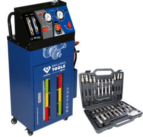 }Brilliant Tools Transmission flushing device for automatic transmissions including 35-piece adapter set