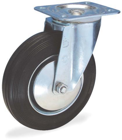 naaf met sterke rollager. Het aslager is zeer geschikt voor lage snelheden. Deze heeft een lage rolweerstand en is vrijwel onderhoudsvrij dankzij de permanente smering. Dubbele rem om stuurmechanisme en wiel tegelijkertijd te blokkeren. velg van plaatstaal, met corrosiebeschermende zinklaag. velg met draadvangkap die voorkomt dat de draad in de war komt ervoor zorgt dat het wiel rol minder vaak onderhoud nodig heeft. behuizing van staal met corrosiebeschermende zinklaag. bevestiging met plaat, lengte x breedte 138 x 109 mm. Zwenklager met kogellager.