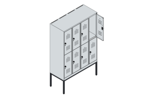 De locker is met een veiligheidsdraaigrendel beveiligd tegen toegang door onbevoegden. Dit sluitmechanisme wordt gekenmerkt door zijn speciale beveiliging tegen openbreken. Het is namelijk niet mogelijk om het sluitmechanisme door stukdraaien te vernielen. In gesloten toestand draait de veiligheidsdraaigrendel door - pas als het hangslot is verwijderd, grijpt de draaigrendel zich vast.