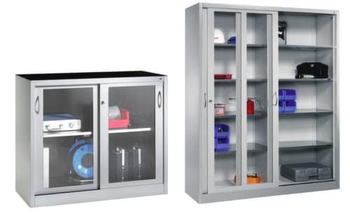"title": "C+P Gereedschapskast ERGO lichtgrijs met schuifdeuren met venster, breedte 1200 mm",