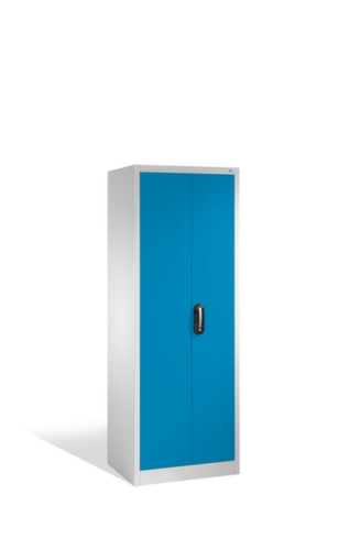de belangrijkste maten van de C+P universele kast ERGO in één oogopslag:De romp van de kast is gemaakt van plaatstaal en stevig gelast. Dit maakt de constructie zeer robuust en sterk en dus duurzamer. Omdat de hoeken en randen van de romp gelast zijn, is de kast goed afgedicht en dus beter beschermd tegen stof, vocht en vuil dan bij een schroefconstructie. Bovendien is regelmatig onderhoud en nastellen niet nodig. Zeer flexibele binneninrichting door verstelbare vakhoogte per 15 mm. uitgerust met legborden. Via de dubbele openslaande deur is de kast zeer goed toegankelijk. Het kokerprofiel aan de binnenzijde en de randafwerking rondom verhogen de stijfheid van de deuren, zodat ze beter bestand zijn tegen vervorming. Hierdoor zijn ze ook bestand tegen zwaardere belasting en zijn ze goed beveiligd tegen diefstal. afsluitbaar met het greepslot Ergo-Lock. Door middel van de grote, ergonomische greepbeugel is de stalen kast, ook met handschoenen aan, gemakkelijk te openen. Sluiten is dankzij het gepatenteerde mechanisme nog gemakkelijker: gewoon dichtdrukken. Voor een gecontroleerde toegang tot de inhoud is de Ergo-Lock standaard uitgerust met een veiligheidscilinderslot. De 3-punts-vergrendeling zorgt voor uitstekende stabiliteit en een doeltreffende inbraakbeveiliging. De sokkel onder de kast zorgt ervoor dat het gewicht van de kast gelijkmatig over de vloer wordt verdeeld. Hierdoor staat de kast stabieler en kan hij zwaardere lasten dragen dan een kast met voeten. En omdat er geen vuil, stof en vocht onder kan komen, hoeft er onder de kast niet te worden schoongemaakt.