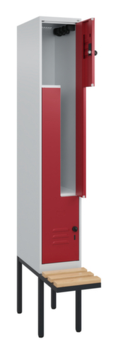 De kasten uit de serie Classic Plus bieden u veel meer dan alleen de typische basiseisen. De constructie is gelast en hierdoor zeer stabiel en duurzaam. Maar u hoeft niet in te leveren op stijl. Door het industriële design met klassieke ventilatiesleuven, smalle zijkanten en inliggende deuren zien de lockers er aantrekkelijk en strak uit, vooral bij opstelling in een rij. Z-lockers zijn een ruimtebesparende en efficiënte oplossing voor kleine kleedkamers of garderobes voor personeel. De ruimtebesparende kast heeft op hetzelfde oppervlak 2 vakken per compartiment, zodat 2 mensen persoonlijke eigendommen kunnen opbergen. In tegenstelling tot bij de locker is het ophangen van langere kledingstukken dankzij de Z-vorm geen probleem