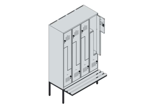 De kasten uit de serie Classic Plus bieden u veel meer dan alleen de typische basiseisen. De constructie is gelast en hierdoor zeer stabiel en duurzaam. Maar u hoeft niet in te leveren op stijl. Door het industriële design met klassieke ventilatiesleuven, smalle zijkanten en inliggende deuren zien de lockers er aantrekkelijk en strak uit, vooral bij opstelling in een rij. Z-lockers zijn een ruimtebesparende en efficiënte oplossing voor kleine kleedkamers of garderobes voor personeel. De ruimtebesparende kast heeft op hetzelfde oppervlak 2 vakken per compartiment, zodat 2 mensen persoonlijke eigendommen kunnen opbergen. In tegenstelling tot bij de locker is het ophangen van langere kledingstukken dankzij de Z-vorm geen probleem